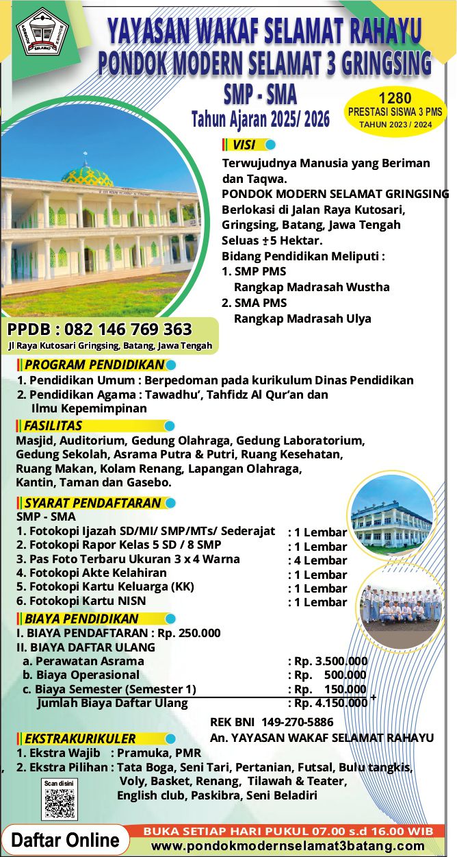 31 Desember 2025 REKAPITULASI BOS TAHUN 2025 TAHAP 2       22 Juli 2025 REKAPITULASI BOS TAHUN 2025 TAHAP 1       19 Juni 2025 KATALOG STUDY TOUR PMS 3 BATANG