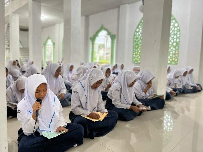 Bulan Ramadhan merupakan bulan yang sangat dinantikan oleh umat Muslim di seluruh dunia, termasuk oleh para santri di Pondok Modern Selamat 3 Batang. Bulan yang penuh berkah ini tidak hanya menjadi waktu untuk menahan lapar dan dahaga, tetapi juga merupakan kesempatan bagi setiap santri untuk meningkatkan kualitas ibadah dan memperdalam ilmu agama. Di Pondok Modern Selamat 3 Batang, kegiatan selama bulan puasa ini dijalankan dengan penuh semangat, memadukan antara ibadah dan pendidikan yang mendalam. Selama bulan Ramadhan, kegiatan para santri di Pondok Modern Selamat 3 Batang dipenuhi dengan rutinitas yang penuh berkah dan makna, dimulai sejak bangun tidur hingga menjelang tidur. Pagi hari dimulai dengan qiyamul lail dan shalat subuh berjamaah, diikuti dengan kebahasaan untuk melatih keterampilan bahasa Arab mereka. Setelah itu, para santri mengikuti pengajian pagi yang membedah kitab ta’limul muta’allim yang membahas ada sebagai seorang pelajar yang baik. Di siang hari, kegiatan dilanjutkan dengan belajar di kelas dan kajian kitab lainnya. Saat sore menjelang, para santri disibukkan kembali dengan beberapa kajian kitab untuk memperdalam pemahaman agama mereka. Setelah berbuka dan shalat maghrib, mereka kembali berkumpul untuk melaksanakan shalat tarawih berjamaah, diikuti dengan tadarus bersama. Menjelang tidur, santri kembali menyempatkan diri untuk berdoa dan melakukan refleksi diri, agar hari berikutnya lebih baik lagi. Di sela-sela kegiatan tersebut, dipandu oleh tim rohis sekolah, para santri juga mengadakan Ramadhan Fest yang diisi dengan lomba murotal, lomba tong-tong prek dan lomba kultum. Setiap hari di Pondok Modern Selamat 3 Batang selama Ramadhan diisi dengan kegiatan yang memperkuat iman, mempererat ukhuwah, dan mengembangkan keilmuan para santrinya.