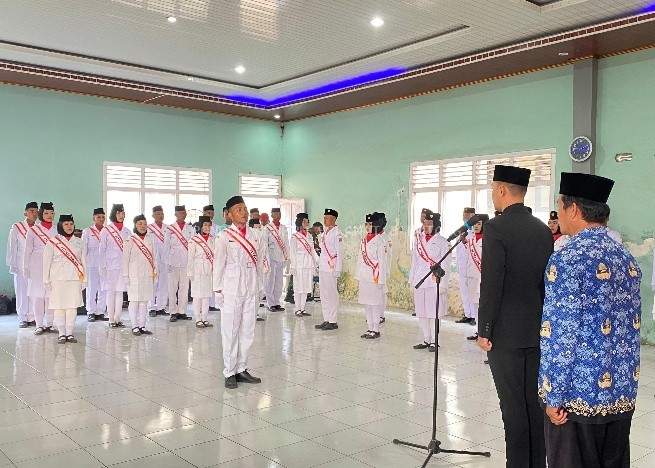 PERWAKILAN SMA PMS 3 GRINGSING DALAM PENGUKUHAN PASUKAN PENGIBAR BENDERA HUT RI KE-80 KECAMATAN GRINGRING