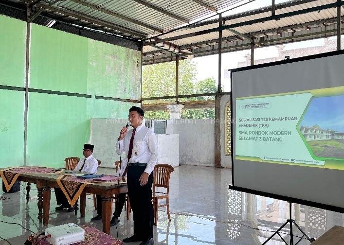 Pada hari Jum’at 3 Oktober 2025 Pondok Modern Selamat 3 Batang telah mengadakan acara sosialisasi Tes Kemampuan Akademik (TKA) untuk siswa kelas 9 dan 12 secara khidmat yang dihadiri oleh beberapa wali santri. Kegiatan ini diselenggarakan oleh pihak pondok, yang mana bertujuan untuk memberikan pemahaman mendalam mengenai persiapan, materi ujian, dan strategi optimalisasi prestasi santri dalam menghadapi TKA sebagai bagian dari seleksi pendidikan lanjutan. Para narasumber dari Kepala Sekolah dan Koordinator PMS 3 Batang menyampaikan materi secara jelas dan interaktif, disertai sesi tanya jawab yang memungkinkan wali santri berbagi kekhawatiran serta tips memberikan support dan motivasi kepada putra-putrinya. Acara ini tidak hanya memperkuat kolaborasi antara pondok dan orang tua, akan tetapi juga menanamkan semangat motivasi bagi santri untuk meraih cita-cita pendidikan yang lebih tinggi, meninggalkan kesan positif dan harapan besar bagi masa depan generasi muda.