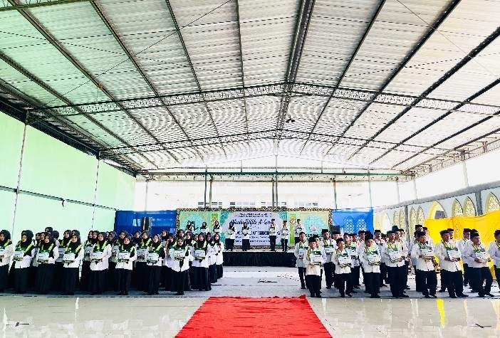 para santri melantunkan ayat suci Al-Quran dengan tartil dan penuh penghayatan.